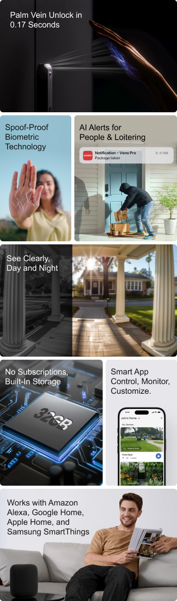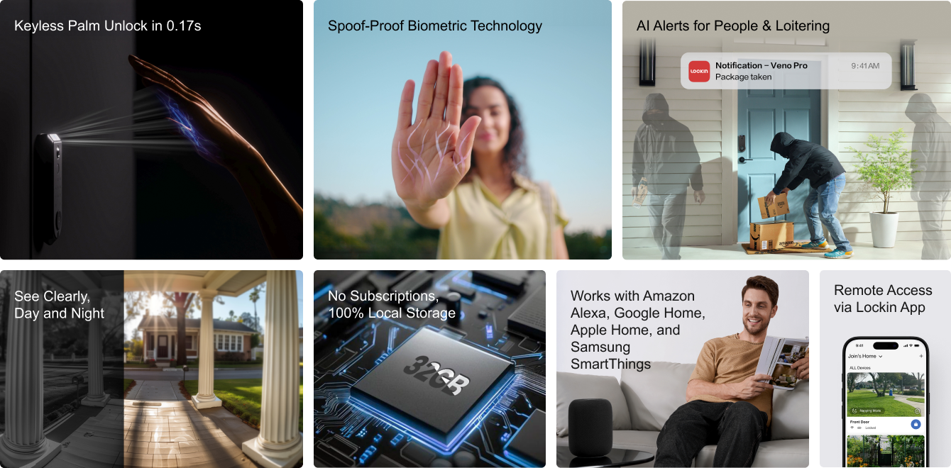 Lockin’s keyless smart lock unlocks your door with palm vein recognition—in just 0.17 seconds and with 99.9% accuracy. No more keys, no app fumbling—just a touchless wave.